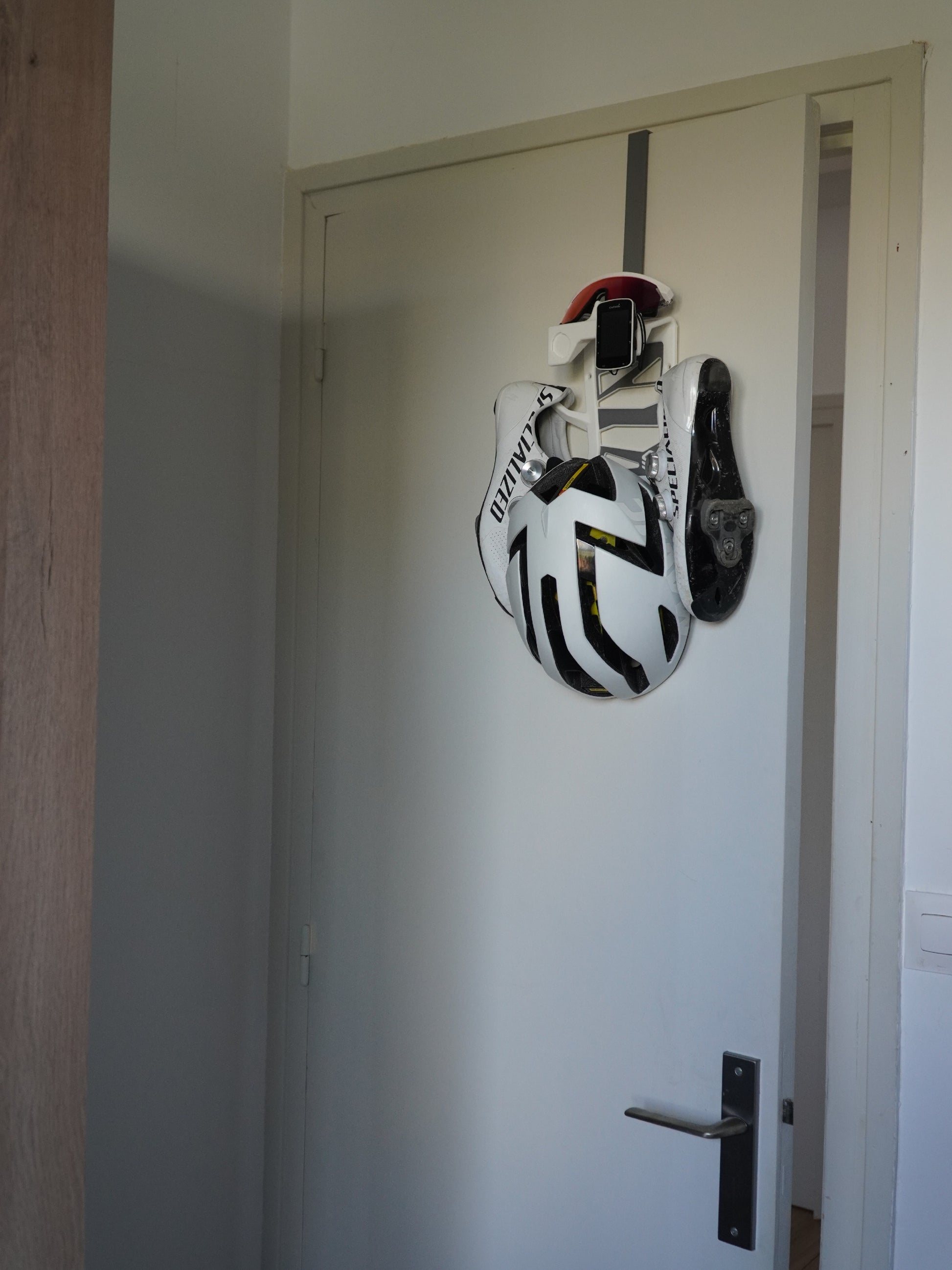 Imprimé en 3D dans notre atelier, il est léger, solide et discret. Il se fixe simplement en haut de la porte, sans modification ou outil particulier.
